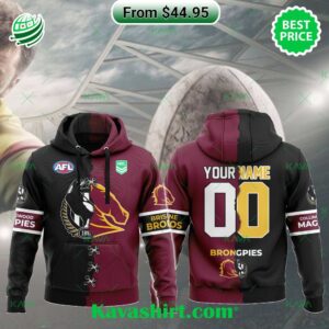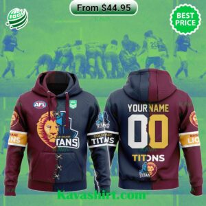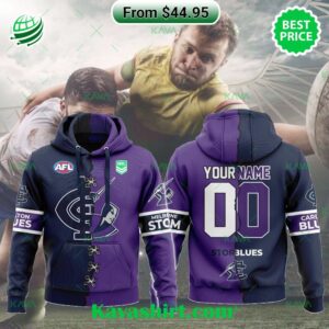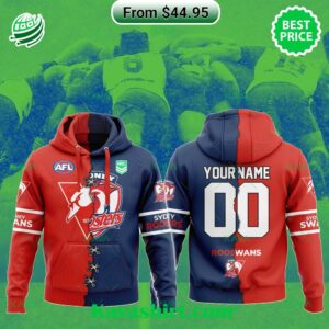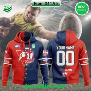 As a devoted fan of both AFL and NRL teams, imagine the stunning hoodie you could rock with your favorite teams’ emblems! Picture this: one side adorned with your beloved team’s logo, while the other blends in the vibrant colors of another team you hold dear. It’s the ultimate fusion of fandom and style!