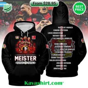 If you bleed black and red, if your heart races with every Leverkusen goal, then the 2023/2024 Deutscher Meister t-shirts and hoodies are a must-have. These aren’t just pieces of clothing; they’re symbols of a dream realized. They represent the tireless passion of Leverkusen fans worldwide, the unwavering belief that this day would come. Wear them with pride and let the world know – Bayer 04 Leverkusen are the champions!