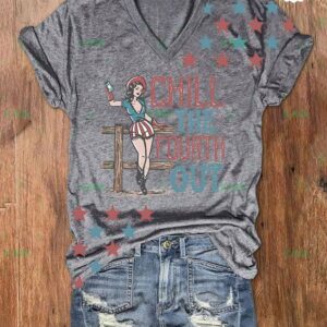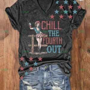 Chill the Fourth Out 4th of July Cowgirl V-neck T-shirt