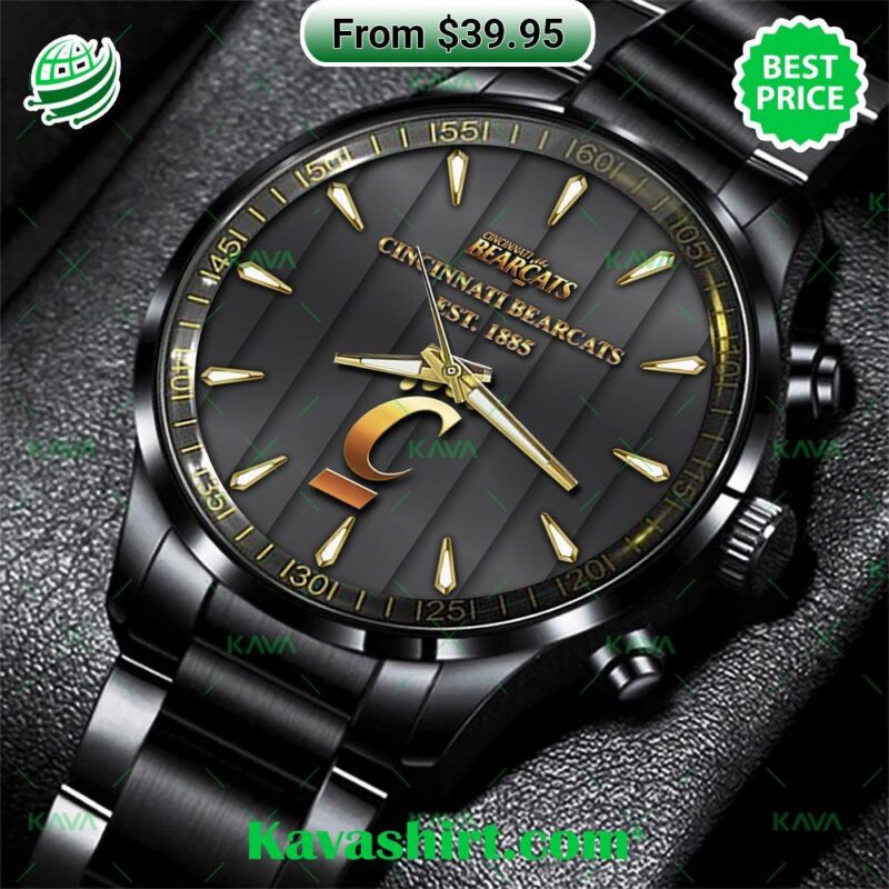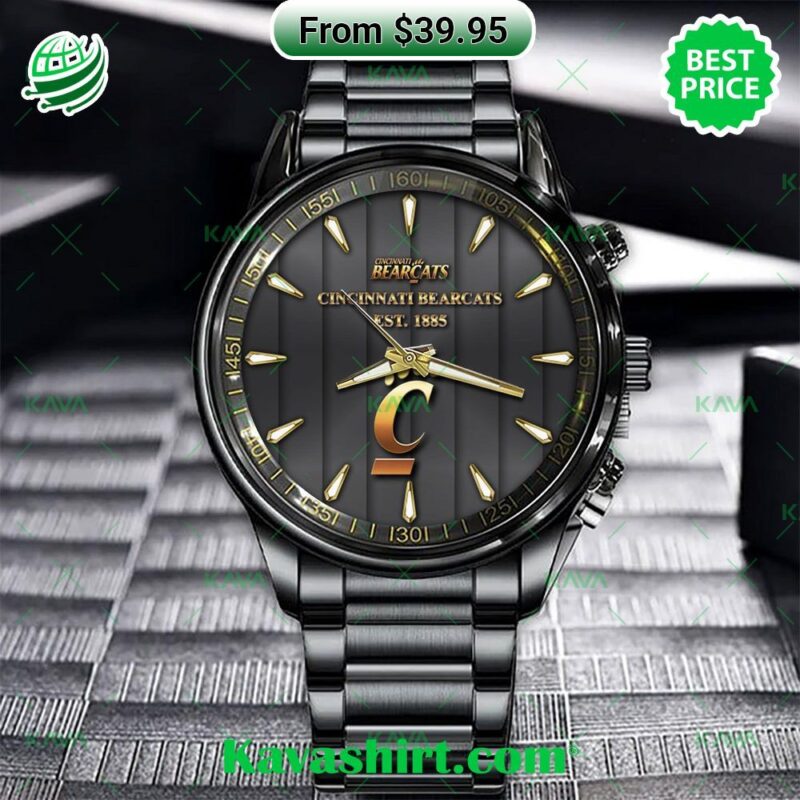 Your wrist isn’t dressed until it’s dripping in Bearcat pride. Gear up for game day and beyond with the Cincinnati Bearcats Stainless Steel Watch – a timepiece that bleeds red and black. This is more than just a watch; it’s a badge of honor, a declaration of unwavering loyalty to your team. Crafted from gleaming stainless steel, this watch exudes both power and sophistication. The bold Bearcat emblem commands attention, while the intricate details whisper of your dedication. It’s a subtle flex, but those in-the-know will catch the spirit. From the boardroom to the bleachers, this watch seamlessly transitions to elevate your look. Imagine the rush as the clock ticks down, the roar of the crowd surging around you. A quick glance at the watch isn’t just about time, it’s a surge of adrenaline, a reminder of the countless battles the Bearcats have overcome. It’s a connection to the legacy you’re carrying forward. This isn’t just about telling time; it’s about living in Bearcat time. Every second is infused with the indomitable spirit of Cincinnati. With this watch, the passion for your team is worn loud and proud. No matter where your day takes you, the Bearcat never leaves your side. Cincinnati Bearcats Stainless Steel Watch