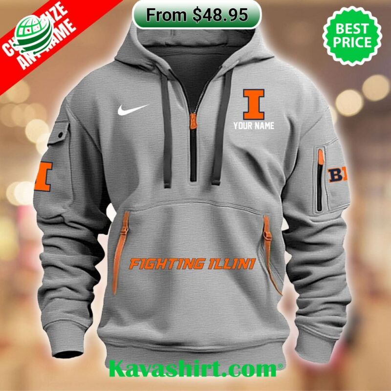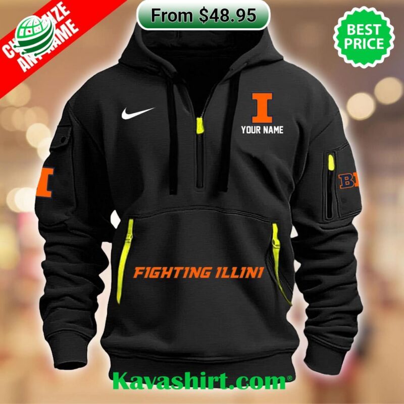 Illinois Fighting Illini Custom Half Zip Heavy Hoodie