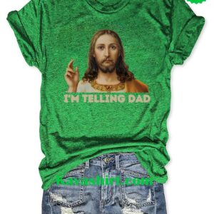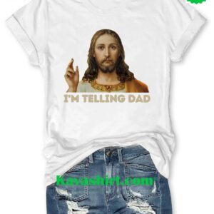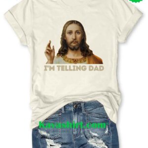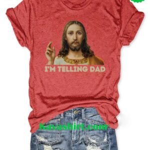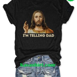 Sunday morning church service, the pastor’s voice booms through the speakers about the importance of obedience, and suddenly, a mischievous grin flashes across a kid’s face in the back pew. They proudly sport a bold t-shirt, a testament to their playful faith – “Jesus, I’m Telling Dad!” The “Jesus, I’m Telling Dad” t-shirt has become a lighthearted phenomenon within Christian circles. It’s a meme turned reality, a wink and a nudge to the ever-present, all-knowing eye of a loving father figure. This shirt isn’t just a fashion statement; it speaks to the unique relationship many Christians have with God. It’s a blend of reverence and a playful acknowledgment of the gentle accountability we feel under His watchful presence. Imagine yourself walking down the street rocking this t-shirt. It’s a subtle, yet powerful conversation starter. You might get double-takes followed by knowing smiles, or even spark a friendly discussion about faith and humor. It’s a shirt with a sense of irony – sure, it references those childhood moments of getting caught doing something a little less than righteous, but it also taps into something deeper. The “Jesus, I’m Telling Dad” t-shirt is a symbol of a faith that isn’t confined to serious sermons or quiet prayer. It’s a declaration that Christianity has a place for laughter, for relatable struggles, and for the joyful understanding that yeah, we mess up sometimes, but there’s always a loving Father waiting with open arms. Whether you wear it proudly or gift it to a friend, this shirt embodies a playful side of faith, celebrating the mix of awe and lightheartedness that makes a believer’s journey so unique.