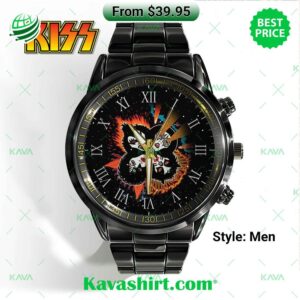 KISS, the legendary rock and roll icons, ignited a rebellion with their electrifying music, outlandish costumes, and explosive stage presence. Now, you can carry that rebellious spirit on your wrist with the KISS Rock and Roll Over Stainless Steel Watch. This timepiece isn’t just a watch – it’s a bold statement. Crafted from gleaming stainless steel, it exudes timeless rock and roll attitude. The iconic “Rock and Roll Over” album artwork blazes across the face, a constant reminder of KISS’s anthemic power. Whether you’re a die-hard fan or simply crave a touch of rockstar edge, this watch demands attention. Designed for both men and women, this watch transcends fashion trends. Its classic construction and durable materials ensure it will withstand the test of time, much like the enduring legacy of KISS themselves. The adjustable band promises a comfortable fit, letting you rock out with maximum style and swagger. More than a timekeeper, the KISS Rock and Roll Over Watch is a wearable piece of rock history. Slip it on and feel the surge of rebellious energy – it’s a call to action, a reminder to unleash your inner rockstar every single day. Kiss Rock and Roll Over Stainless Steel Watch