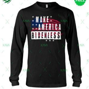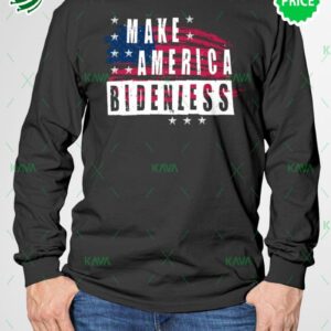 The Make America Bidenless Shirt is the perfect way to show your support for a Biden-free America. This shirt features a bold and patriotic design that is sure to turn heads and spark conversations wherever you go. Made from high-quality materials, this shirt is soft and comfortable to wear all day long. The classic fit is flattering on all body types, making it a versatile piece for any wardrobe. Whether you’re wearing it to a rally, gathering with like-minded friends, or just running errands around town, this shirt will showcase your stance on current political issues in a fun and fashionable way. The message on the shirt is clear and concise: “Make America Bidenless.” It’s a call to action for those who believe in a different future for our country, one that is free of the current administration. By wearing this shirt, you can show your support for change and make a statement without saying a word. This shirt is also a great gift idea for friends and family who share your beliefs. It’s a conversation starter and a way to connect with others who feel the same way. And with multiple color options available, you can choose the one that best suits your style and preferences. Stand out from the crowd and make a statement with the Make America Bidenless Shirt. Join the movement for change and let your voice be heard in a fashionable and impactful way. Make America Bidenless Shirt