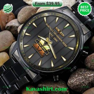 Forget blending in. Your wrist deserves a statement piece. Ditch those generic, forgettable watches. It’s time to unleash your Marshall Thundering Herd pride with a timepiece that packs a punch. Crafted from gleaming stainless steel, a Marshall Thundering Herd watch isn’t just an accessory – it’s a declaration. It’s game days at the Joan. It’s roars of excited fans. It’s that unshakeable Herd spirit woven into every shining link. Choose your allegiance: bold leather bands in classic black and brown, or the cool gleam of the stainless steel bracelet. Every detail screams Marshall. The iconic ‘M’ logo takes center stage, framed by a bezel that echoes your team colors. This isn’t just about telling time – it’s about wearing your passion where the world can see it. This watch isn’t afraid of a little action. It’s built to withstand the rowdy celebrations and the tense, nail-biting moments that come with being a Thundering Herd fan. From tailgate parties to championship games, this watch is as loyal a companion as you’ll find. So, are you ready to elevate your style? A Marshall Thundering Herd stainless steel watch demands attention, commands respect, and lets everyone know your heart beats green and white. This is more than a watch – it’s a badge of honor. Marshall Thundering Herd Stainless Steel Watch