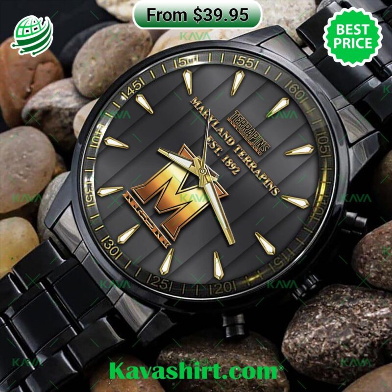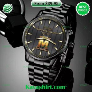 Step into the game of bold style and Terrapin pride with a Maryland Terrapins Stainless Steel Watch. This isn’t just a timepiece; it’s a declaration of your unwavering loyalty to the fearless Terps! Imagine the gleam of polished steel on your wrist, the iconic Maryland ‘M’ and Testudo mascot etched with precision. It’s the perfect fusion of sporty elegance and spirited fandom. Feel the spirit of College Park with every glance. This watch doesn’t just tell time; it tells the story of legendary matchups, buzzer beaters, and the roar of the crowd. The durable stainless steel construction echoes the resilience of your beloved team. Wear it with your favorite Terps jersey or your most polished attire; this versatile accessory effortlessly transitions from the stands to everyday life. Customize your look with a variety of band styles. Choose the classic elegance of a sleek, linked band or the rugged edge of textured leather. Whether your style is subtle or bold, there’s a Maryland Terrapins Stainless Steel Watch that perfectly aligns with your own personal brand of fandom. From the bustling campus to the boardroom, let this watch elevate your game. It’s a constant reminder of the grit, determination, and heart that defines Maryland athletics. So, whether you’re an alum reliving the glory days or a current student cheering your heart out, let this watch be your wearable tribute. This is more than an accessory; it’s a symbol of the unbreakable Terrapin spirit that resides within you. Maryland Terrapins Stainless Steel Watch