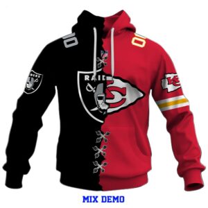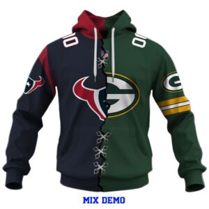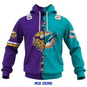 The customization process is a breeze – simply select the two NFL teams that hold a special place in your heart, choose from an array of design options, and witness the transformation of your vision into a wearable masterpiece. Whether you’re attending a live game, hosting a watch party, or hitting the streets with friends, your Mix 2 Teams NFL Custom Hoodie is guaranteed to turn heads and evoke admiration from fellow fans. In a world saturated with standard fan apparel, stand out from the crowd with a garment that encapsulates the very essence of your football fervor. Embrace the synergy of two teams on a single canvas, proudly showcasing your allegiance to the sport and the unique blend of rivalries and alliances that make the NFL the powerhouse of American sports. Elevate your fan experience and redefine your game day wardrobe – order your Mix 2 Teams NFL Custom Hoodie today and witness the fusion of fandom unfold in a fashion-forward and unparalleled manner!
