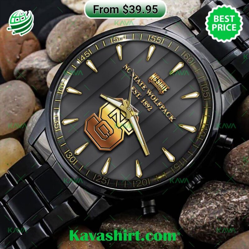 Forget basic, embrace bold. It’s time to ditch the predictable timepiece and unleash your inner Wolfpack spirit with an NC State Stainless Steel Watch. These aren’t just watches; they’re statements of unwavering pride. Every polished curve, every gleaming detail, shouts your loyalty to the Pack. Where function meets fierce. These watches are meticulously crafted to perform as flawlessly as your favorite team. Durable stainless steel builds, water-resistant designs – these timepieces are ready to weather any game-day storm. Forget delicate; these watches mean business. The devil’s in the details. From the iconic Wolfpack logo etched with precision, to bold pops of NC State crimson, these watches are wearable tributes to your team. Think luminous hands to keep time even in the rowdiest sections, and rotating bezels for those adrenaline-pumping final minutes. More than just a watch, it’s your Pack pride on display. Whether you’re rocking it at Carter-Finley Stadium or adding a touch of team spirit to your everyday style, an NC State Stainless Steel Watch is a constant reminder of the passion that burns within you. Every glance at your wrist becomes a silent roar of support. Are you ready to elevate your game-day gear? Because with an NC State Stainless Steel watch, you’re not just telling time, you’re making a style statement that screams Wolfpack for life! NC State Wolfpack Stainless Steel Watch