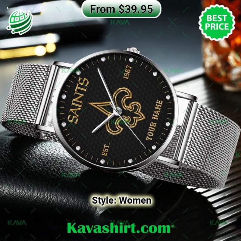 If you bleed black and gold, a custom New Orleans Saints stainless steel watch is the perfect way to display your team pride with timeless style. These watches go beyond simple merchandise – they’re wearable statements of your dedication to the Who Dat Nation. New Orleans Saints custom stainless steel watches offer a unique blend of features that set them apart from the everyday sports watch: Stainless Steel Craftsmanship: Durable and gleaming, stainless steel construction ensures your watch can withstand the excitement of game day, tailgates, and beyond. It’s an elegant and long-lasting material that complements any outfit. Iconic Saints Branding: These watches proudly display the iconic Saints fleur-de-lis logo, team colors, and often additional team-related design elements. Show your love for the Saints with a bold and recognizable piece. Customization Options: The best custom watches take fandom to the next level. Personalize with your name, jersey number, or a special message engraved on the back. It becomes a truly one-of-a-kind piece. Functionality and Reliability: Whether you opt for classic analog or a feature-rich digital display, these watches are designed for more than just looks. Expect reliable timekeeping, water resistance, and other practical functions. Variety of Styles: From sleek minimalist designs to bold, sporty styles, there’s a Saints stainless steel watch that suits your unique taste and personality. A custom stainless steel New Orleans Saints watch combines unwavering team spirit with enduring quality. Whether you’re searching for a statement piece for game days or a way to subtly incorporate your fandom into your daily life, there’s an option out there to make you proud. Explore the full range of styles and find the perfect Saints watch to elevate your fan experience. NFL New Orleans Saints Custom Stainless Steel Watch