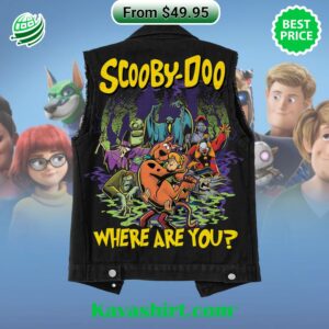 Zoinks! Step into the groovy realm of Mystery Inc. with this incredible Scooby-Doo Where Are You 2D Sleeveless Denim Jacket! This blast-from-the-past garment channels the iconic style of everyone’s favorite meddling kids from the classic cartoon series.Imagine rocking up to your next hangout with the Mystery Machine practically painted on your back! This jacket is a statement piece that throws it back to the golden age of Saturday morning cartoons. The vibrant, almost Pop Art styling captures the essence of Scooby-Doo Where Are You – those bold outlines, those unmistakable colors! The 2D styling gives it an animated  feel, like you’ve stepped into a cel from the show. Denim is endlessly cool, and this design elevates it to a whole new level. The sleeveless cut lends it an edge of retro rebellion, perfectly in tune with those teenage sleuths who loved bucking the rules. Whether you’re layering it for a touch of warmth or rocking it bare-armed in the summer sun, this jacket adds a funky pop of personality to any outfit. Channel your inner Velma and Daphne – bold, curious, and always ready to outsmart the baddie – with a dash of Fred’s style savvy. And of course, you can’t forget Scooby and Shaggy’s relaxed vibes – because sometimes, chasing ghosts with your best friend calls for chill attire. This jacket merges them all in one awesome statement piece. Get ready for adventures, hijinks, and maybe even a few Scooby Snacks when you put on this masterpiece. It’s more than just a jacket; it’s a wearable invitation into the world of Scooby-Doo! Scooby-Doo Where Are You 2D Sleeveless Denim Jacket