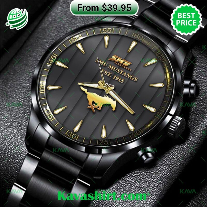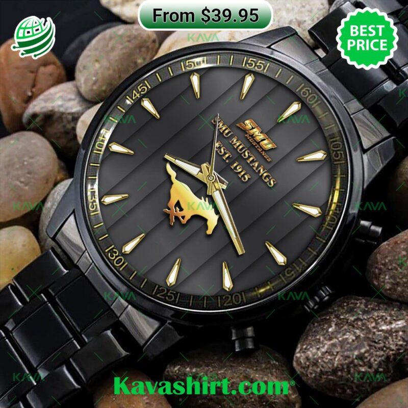 The roar of the crowd swells as the Mustangs charge down the field. Sunlight dances on the polished links of your watch; the bold SMU logo gleams against the dial. You’re not just in the stands; you’re a part of Dallas’s college football legacy. With an SMU Mustangs Stainless Steel Watch, it’s more than telling time – it’s about wearing your pride and passion on your sleeve. These watches are where craftsmanship meets school spirit. Imagine the gleam of stainless steel – silver, gold, or a bold two-toned look – a testament to Mustang determination. Each piece doesn’t just tell the time, it tells a story. Classic and sporty designs mirror the versatile spirit of SMU. Intricate details, like subtle pops of team colors or the iconic Peruna mascot on the dial, turn your watch into a wearable tribute. From the first pep rally to those hard-fought victories at Ford Stadium, a Mustangs watch is your constant companion. Feel its sturdy weight on your wrist, a subtle reminder of the power and poise of your beloved team. It’s the perfect accent for your game-day outfit or those days when you want to carry a hint of that SMU energy out into the world. An SMU watch isn’t merely an accessory; it’s a symbol. A symbol of belonging, of shared triumphs, and of the unwavering spirit that surges through the Boulevards. Whether you’re an alum reliving those glory days or a current student fueling campus pride, this watch transforms time into a tangible connection to your Mustang family. SMU Mustangs Stainless Steel Watch