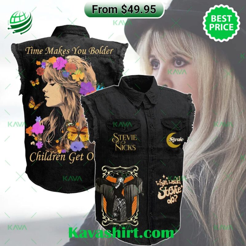 Stevie Nicks Time Makes You Bolder Children Get Older 2D Sleeveless Denim Jacket – DETAIL: