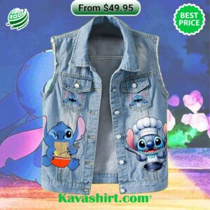 Hold onto your tastebuds, because the food-inspired fashion scene just got a whole lot spicier with the “Stitch I’m Just Here For The Food” Sleeveless Denim Jacket. This bold, mouthwatering statement piece is a feast for the eyes and a declaration of your true culinary devotion. Imagine the perfect blend of classic denim cool and playful food-lover flair. The vibrant, screen-printed Stitch – everyone’s favorite mischievous alien from Disney’s Lilo & Stitch – sprawls across the back, surrounded by an explosion of tempting treats. His wide eyes say it all: “Forget the galactic experiments, I’m after those earthly delights!” This jacket is more than just a fashion statement; it’s an invitation to indulge in the simple pleasures of deliciousness. The sleeveless design brings a laid-back summery vibe, perfect for picnics, food festivals, or just a casual stroll down snack-filled aisles. Its rugged denim construction whispers durability, a promise that this jacket will be your trusty sidekick on all your culinary adventures. The “Stitch I’m Just Here For The Food” jacket is a celebration of unabashed foodie passion, where deliciousness and self-expression collide. Whether you’re a gourmet connoisseur, a comfort food champion, or simply someone who lives to eat, this jacket proudly proclaims your love for all things tasty. So, slip it on, unleash your inner foodie, and let the world know that your appetite for style is just as boundless as your appetite for good food! Stitch I’m Just Here For The Food 2D Sleeveless Denim Jacket