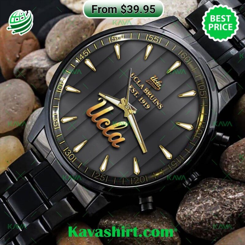They say time is a relentless tide, washing away fleeting moments. But for the diehard UCLA Bruin, there’s a way to anchor yourself to the greatness that courses through Westwood. A way to make every second resonate with the electric blue and gold spirit of champions. Your wrist is calling not for just a timepiece, but a talisman. Introducing the UCLA Bruins Stainless Steel Watch – a statement of elegance and unwavering devotion. Imagine the gleam of polished steel catching the California sun, echoing the trophies of legend. With every glance, you’re transported back to the roar of Pauley Pavilion, the thrill of victory etched in its precise lines. This isn’t just about telling time; it’s about weaving time into your Bruin story. From the nail-biting minutes on the court to the sweet rush of graduation day, each tick of the second hand is infused with your memories, your legacy. The bold UCLA emblem, etched upon the watch face, whispers of a shared history. With each wear, you join the ranks of generations of Bruins – alumni who moved mountains, scientists who defied limits, and trailblazers who painted the world in those iconic colors. It’s a silent bond, a mark of excellence worn proudly. This is more than a watch. It’s your link to the unstoppable force that is UCLA. A timeless symbol of the Bruin spirit that burns within your heart. UCLA Bruins Stainless Steel Watch