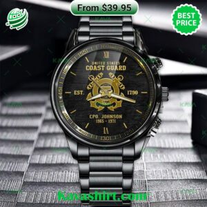 Introducing our United States Coast Guard Personalized Watch, the perfect timepiece for any Coast Guard supporter or member. Made with high-quality materials and expert craftsmanship, this watch is not only stylish but also durable enough to withstand the demanding tasks of Coast Guard duty. This watch features the iconic Coast Guard logo on the watch face, showcasing your pride and support for this vital branch of the United States military. In addition, you have the option to personalize the watch with a name, rank, or special message, making it a truly unique and special accessory. Whether you are a Coast Guard veteran, active-duty member, family member, or simply a patriotic American, this watch is a great way to show your support and appreciation for the men and women who serve and protect our country’s coastal waters. With its sleek design and comfortable fit, this watch is suitable for everyday wear or special occasions. It makes a great gift for birthdays, holidays, graduations, or retirement celebrations. Imagine the joy on your loved one’s face when they receive this personalized Coast Guard watch, a tangible symbol of their commitment and sacrifice. Don’t wait any longer to own or gift this one-of-a-kind United States Coast Guard Personalized Watch. It’s a timeless piece that will be treasured for years to come. Get yours today and show your pride for the Coast Guard in style. United States Coast Guard Personalized Watch
