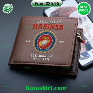 For all proud Marines out there, this gorgeous United States Marine Corps Personalized Leather Wallet is a must-have item! This customized wallet, which is made of premium leather, not only radiates elegance and flair but also demonstrates your steadfast devotion to the USMC. This wallet is the ideal everyday necessity thanks to its elegant design and fine stitching, which make it both timeless and sturdy. However, this wallet’s attractiveness extends much beyond its look. Having separate sections for cash, IDs, and cards means you’ll have everything you need conveniently located. Furthermore, the unique engraving provides a unique touch that makes this wallet stand out from the others. You may wonder why I chose this wallet. Because it represents your dedication and pride as a Marine and is more than simply an accessory. It communicates to the world that you are a powerful, tall person who is prepared to protect your nation at any time. Embrace the Marine Corps’ pride and legacy by using our custom leather wallet. With this magnificent artwork, which says volumes about who you are and what you stand for, you will make a statement everywhere you go. Obtain yours now to always have a small piece of the Marine Corps with you. Semper Fi! United States Marine Corps Personalized Leather Wallet