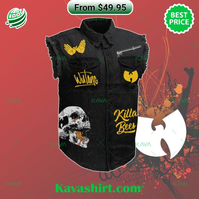 Channel the raw energy and timeless style of the Wu-Tang Clan with this limited edition Killer Bees denim jacket. A statement piece for any hip-hop head or streetwear connoisseur, this jacket pays homage to the iconic group’s legacy, blending rebellious attitude with a classic denim silhouette. Crafted from premium black denim, the jacket boasts a rugged, lived-in feel that exudes old-school cool. The sleeveless design offers a modern twist, providing a relaxed and versatile fit perfect for those warmer days. Emblazoned across the back, the iconic Wu-Tang “W” and the fierce Killer Bees swarm in vibrant yellow – a symbol of the clan’s undeniable power and lyrical mastery. This jacket isn’t just about the look; it’s about the attitude. It’s a testament to the spirit of hip-hop – a culture of self-expression, defiance, and undeniable swagger. Slip it on and feel the energy of the Wu-Tang Clan pulse through you. Whether you’re hitting the streets, rocking a festival stage, or simply chilling with your crew, the Wu-Tang Clan Killer Bees Denim Jacket is the perfect way to rep your love for one of hip-hop’s most influential groups. Wu-Tang Clan Killer Bees Protect Ya Neck 2D Sleeveless Denim Jacket